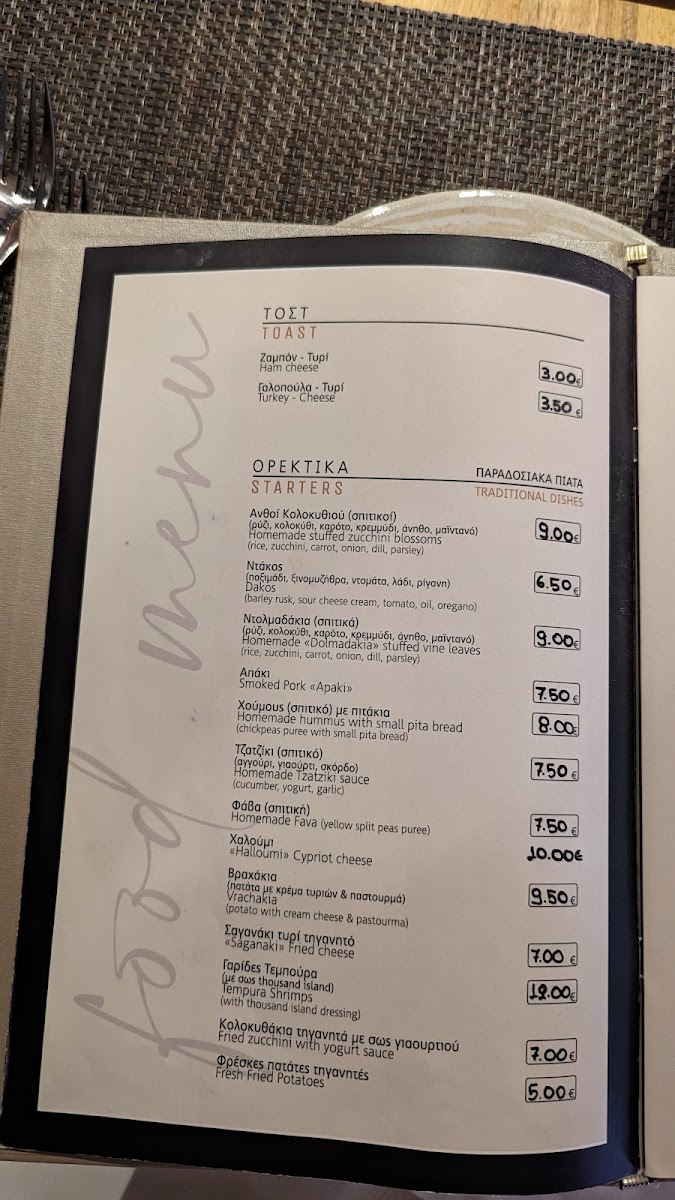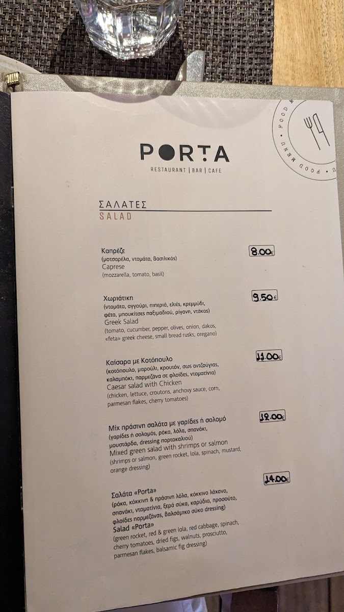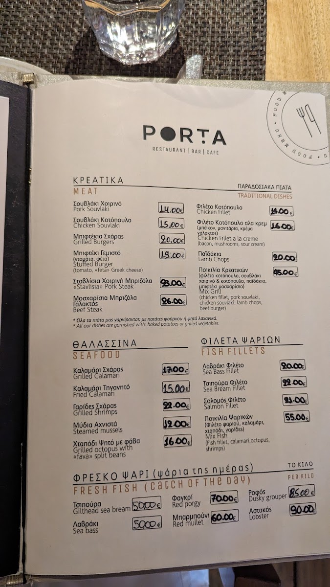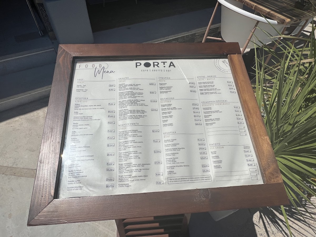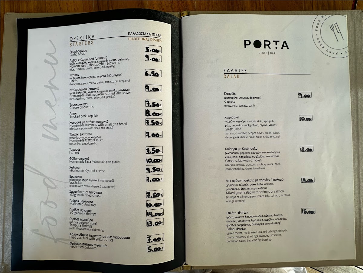 Porta | Resto Bar presents a thoughtfully curated menu that balances casual comfort with authentic Greek character, making it ideal for relaxed yet memorable dining. The experience begins with simple pleasures like Bread and the well-prepared Tsatsiki, both setting a fresh and flavorful tone. The Of Cold Cuts selection adds a savory variety that pairs well with drinks, while dishes like Some Quality Time reflect a creative touch that elevates the overall offering beyond the expected. A highlight of the menu is the Σταβλησια Μπριζόλα, a hearty and satisfying choice that showcases the kitchen’s ability to deliver rich, traditional flavors with care. Altogether, the menu strikes a pleasing balance between classic staples and distinctive specialties, ensuring that guests leave with a well-rounded impression of both quality and authenticity.